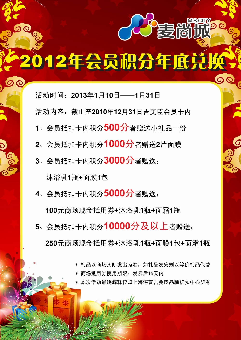 麦尚城漕溪店2012年底积分兑换活动