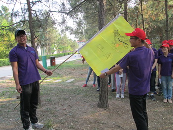 开训前,教练为了激发员工拼博、创新的潜能及更好的理解团队协作的重要性,特将公司团队分成两个团队。在两队积极的讨论与商确下,完成了队名(雄鹰队和咆哮队)、队训、队歌的确定。