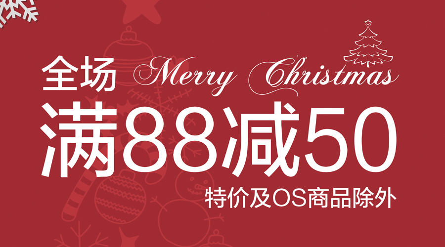 活动期间全场购物满88元立减50元哦!(特价及overstep品牌商品除外)