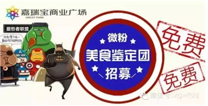 活动内容:微粉美食鉴定团成员可在嘉瑞宝广场