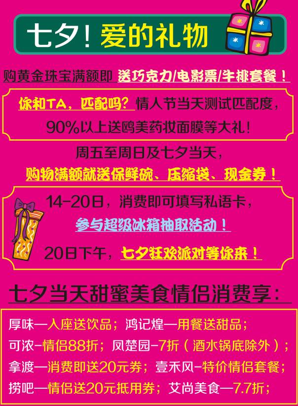 七夕,仔细看看嘉瑞宝广场为情侣们准备了哪些惊喜吧!