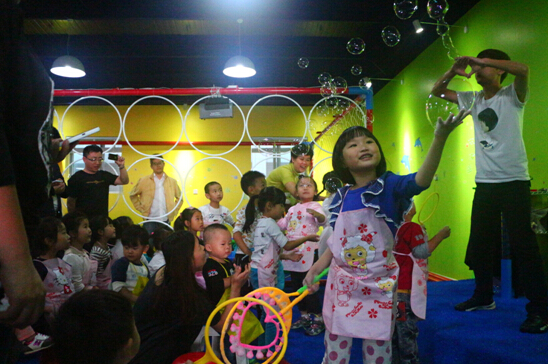 阿尔法泡泡体验馆游戏众多,其中有泡泡照相馆、泡泡跑步机、泡泡打气筒等等游戏体验。